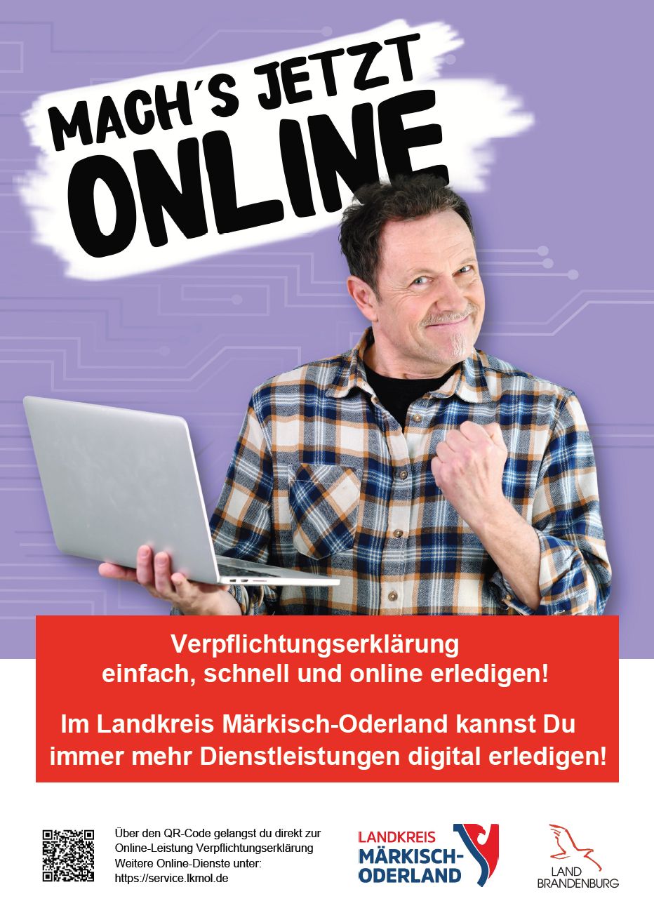 Ab sofort steht die Verpflichtungserklärung als neue Online-Leistung im Serviceportal des Landkreises Märkisch-Oderland zur Verfügung. Damit können Bürgerinnen und Bürger diese rechtlich verbindliche Erklärung nun bequem online abgeben.